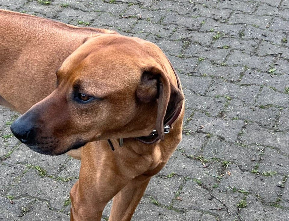 Tayo lebt inzwischen seit 1,5 Jahren in unserer Obhut und hat sich vom Beißer zum Ridgeback mit Special Effects entwickelt. Mit einer Schulterhöhe von 74 cm und einem Gewicht von ca. 50 kg ist Tayo ein imposanter Rüde. Geboren ist er 06/2020. Seit 2025 ist Tayo kastriert.